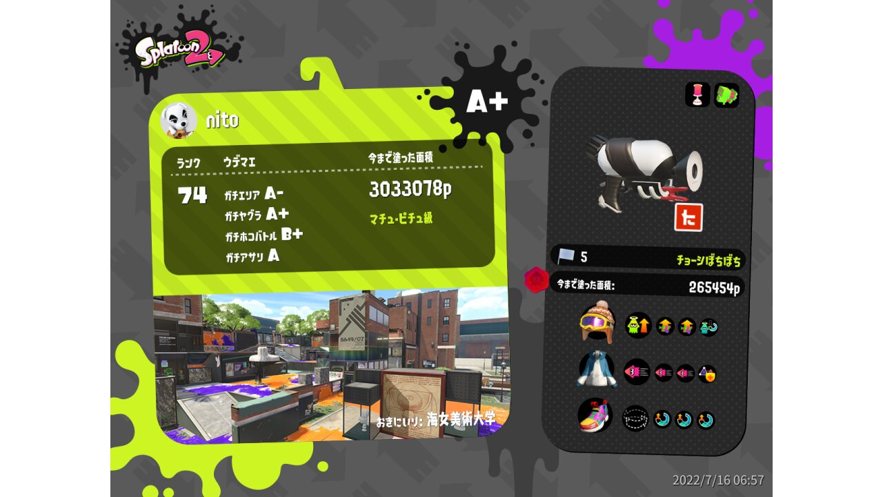 | Name | Weapon | Level | Rank | Inked | k+a/sp | k/d |