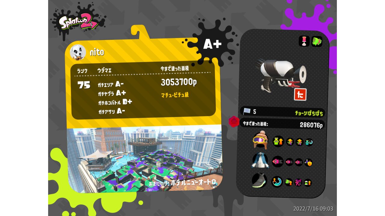 | Name | Weapon | Level | Rank | Inked | k+a/sp | k/d |