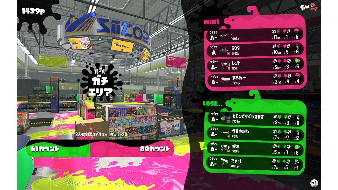 | Mode | Splat Zones - Ranked Battle | ||||||||||||||||||||||||||||||||||||||||||||||