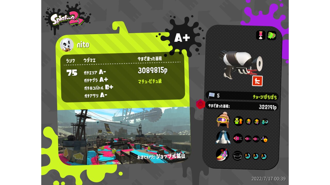 | Name | Weapon | Level | Rank | Inked | k+a/sp | k/d |