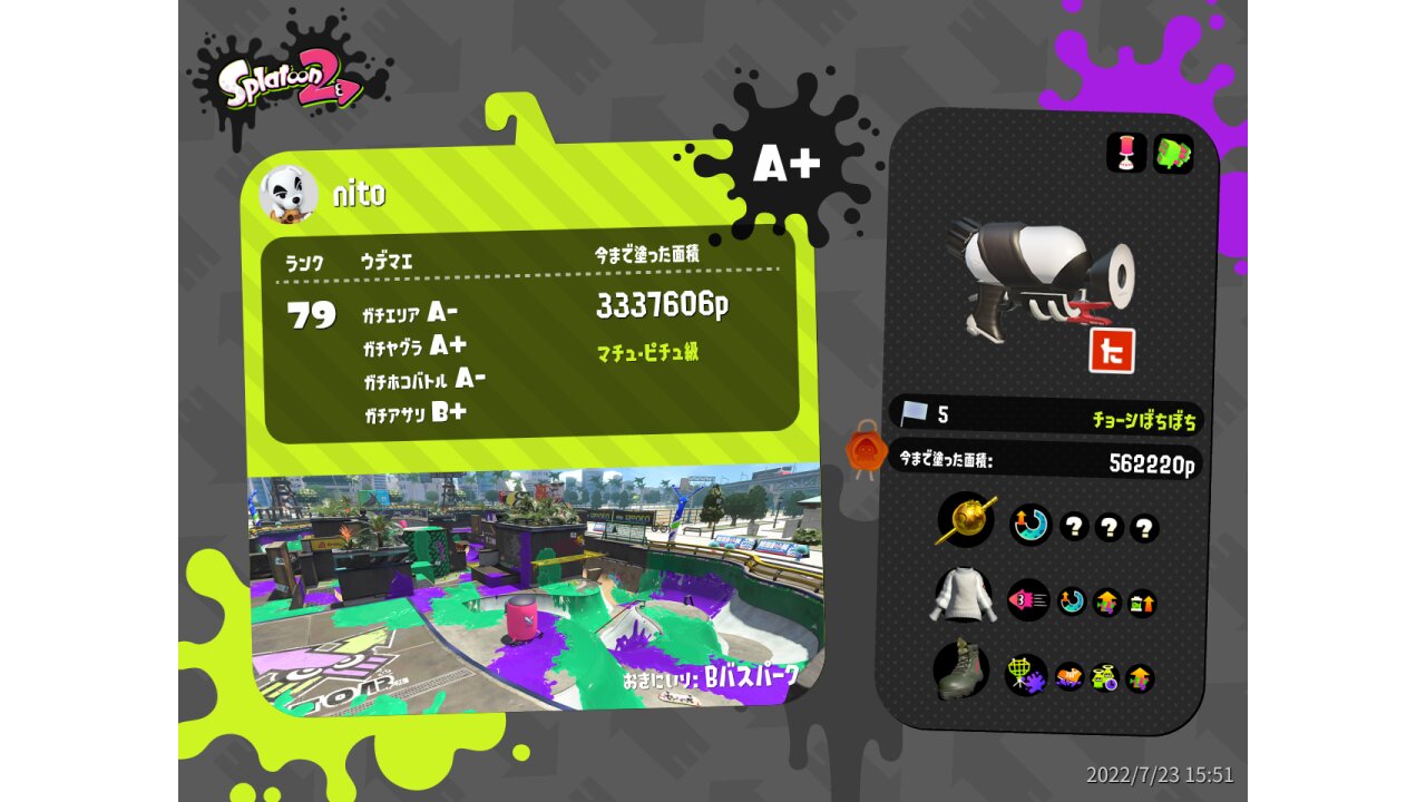 | Name | Weapon | Level | Rank | Inked | k+a/sp | k/d |