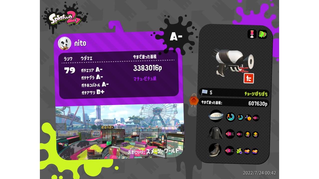 | Name | Weapon | Level | Rank | Inked | k+a/sp | k/d |
