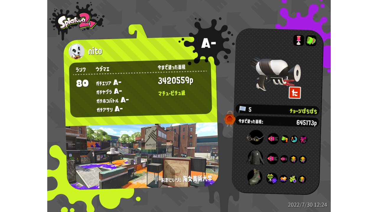 | Name | Weapon | Level | Rank | Inked | k+a/sp | k/d |