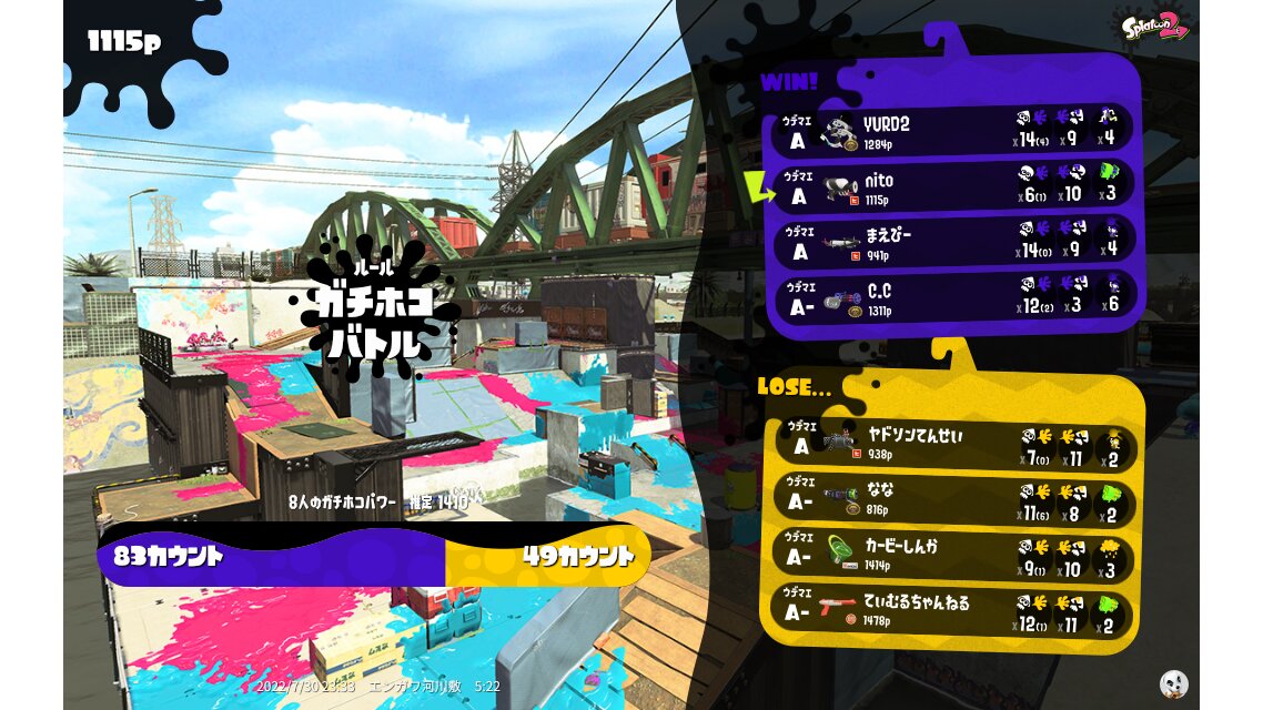 | Name | Weapon | Level | Rank | Inked | k+a/sp | k/d |