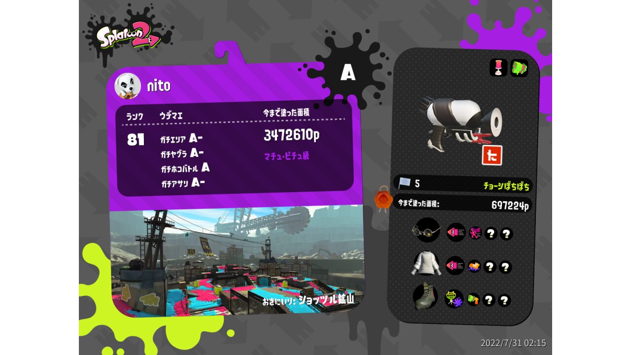 | Name | Weapon | Level | Rank | Inked | k+a/sp | k/d |