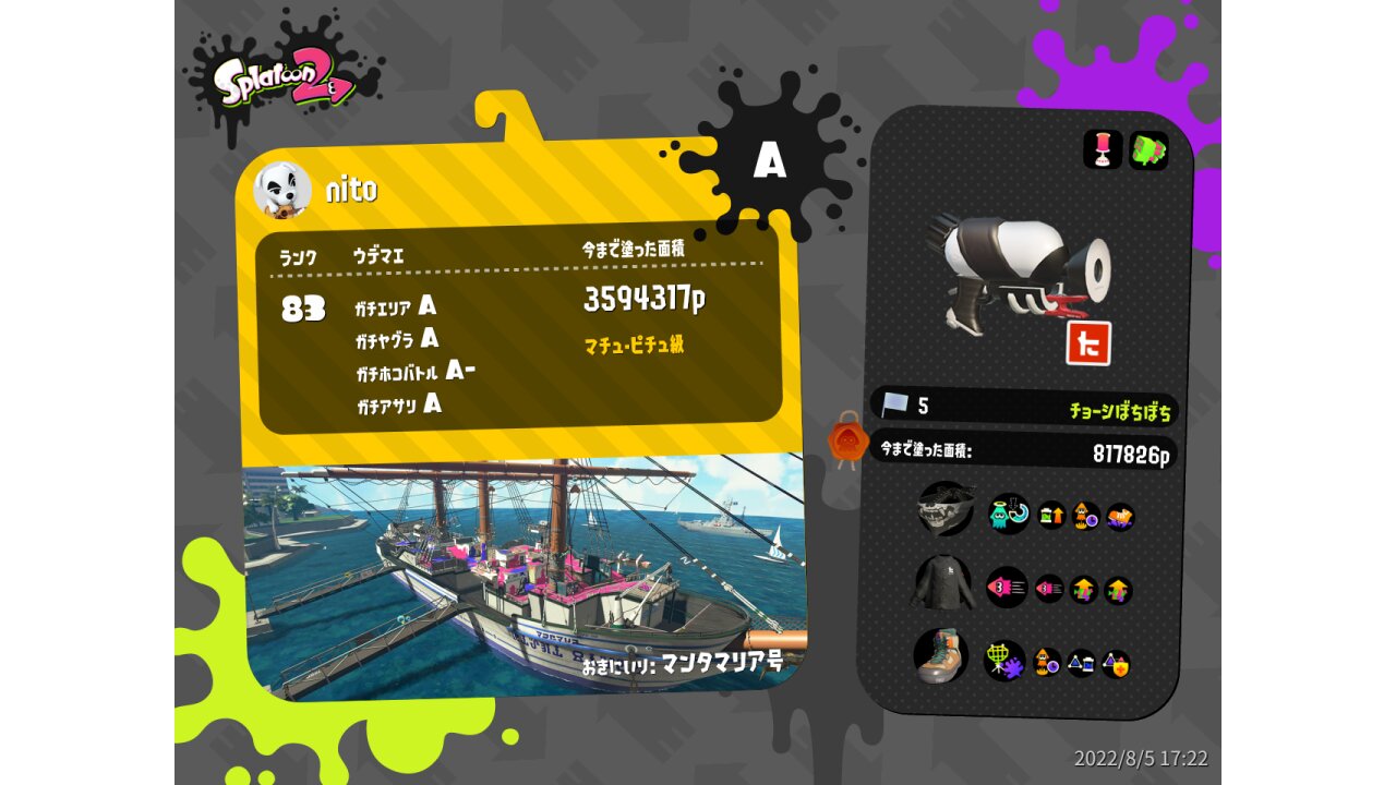 | Name | Weapon | Level | Rank | Inked | k+a/sp | k/d |
