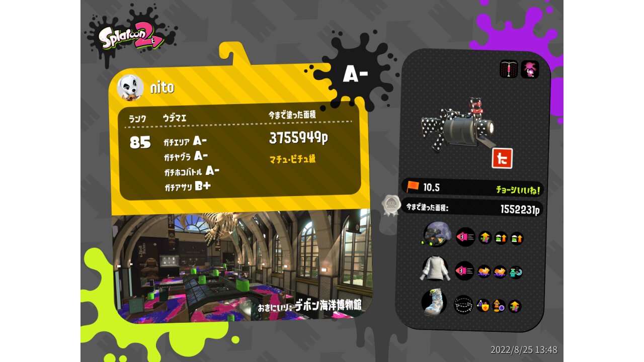 | SplatNet Battle # | 4,320 | |||||||||||||||||||||||||||||||||||||||||||