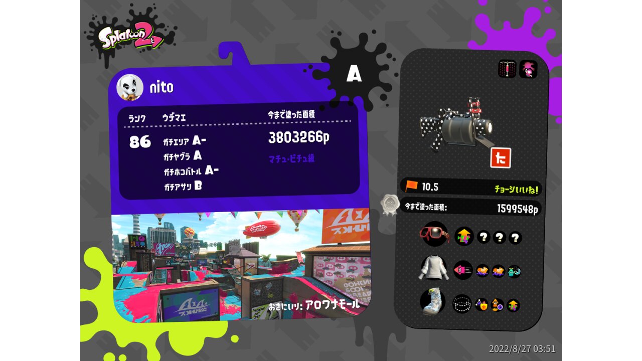 | User Agent | splatnet2statink / 1.8.2 | ||||||||||||||||||||||||||||||||||||||||
