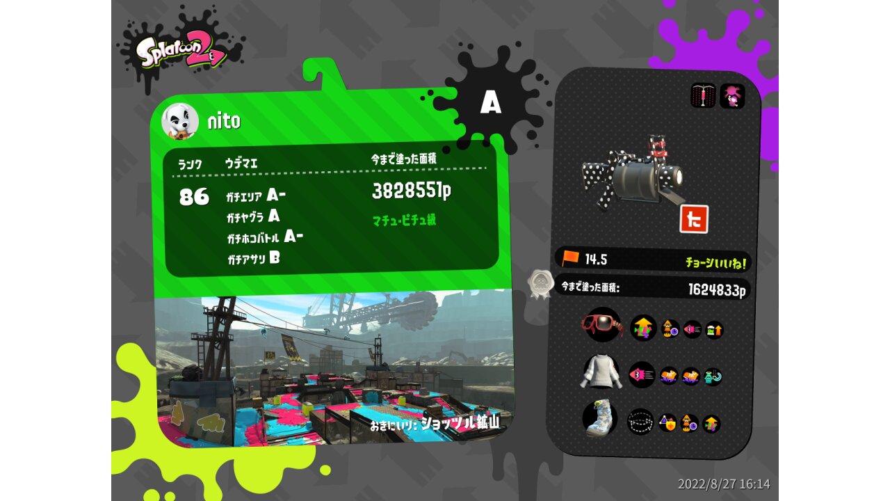 | Name | Weapon | Level | Rank | Inked | k+a/sp | k/d |
