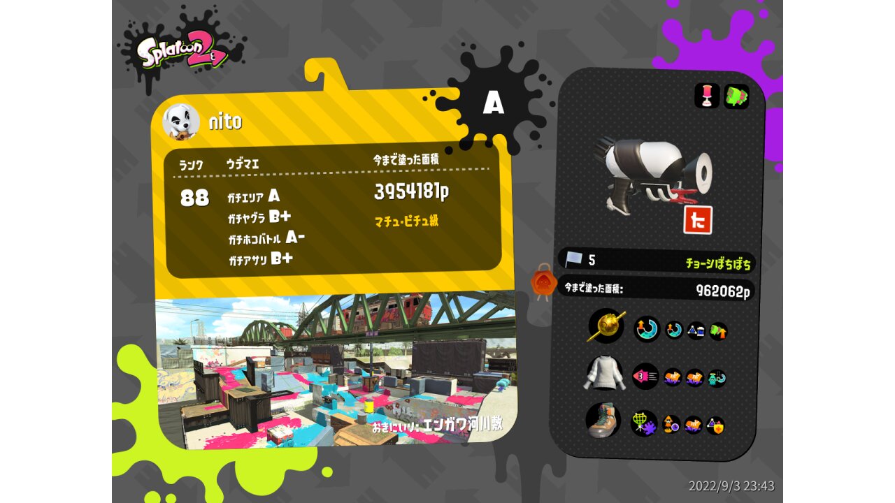 | Name | Weapon | Level | Rank | Inked | k+a/sp | k/d |