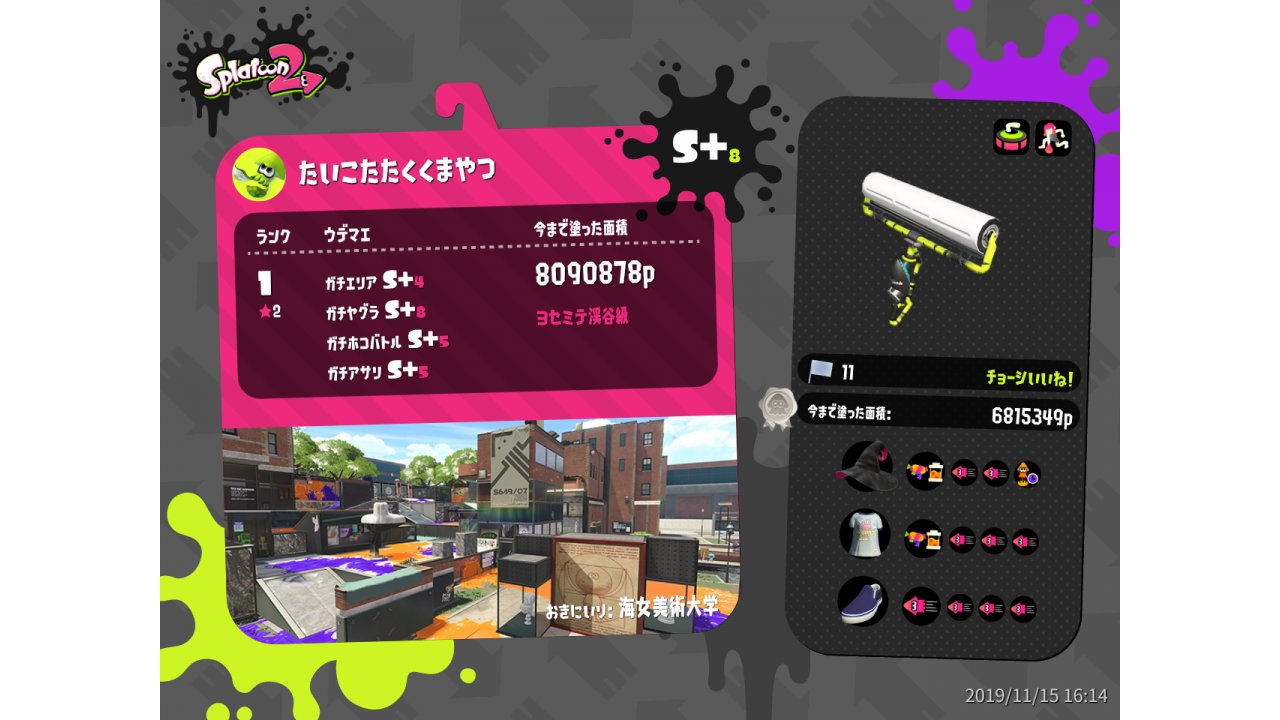 | Name | Weapon | Level | Rank | Inked | k+a/sp | k/d |