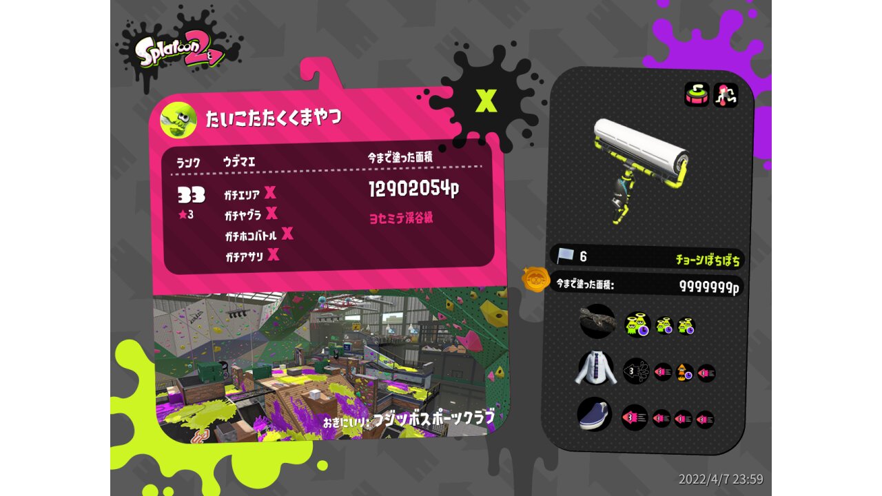 | SplatNet Battle # | 22,751 | |||||||||||||||||||||||||||||||