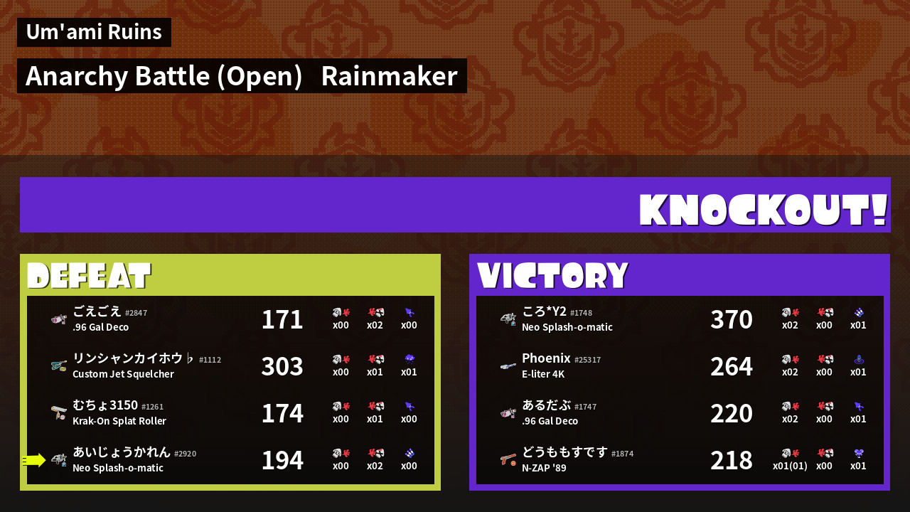 | Mode | Rainmaker - Anarchy Battle (Open) | ||