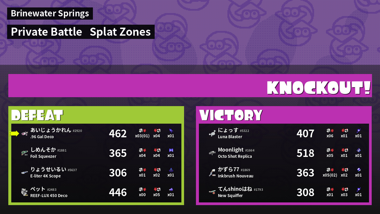 | Mode | Splat Zones - Private Battle | ||