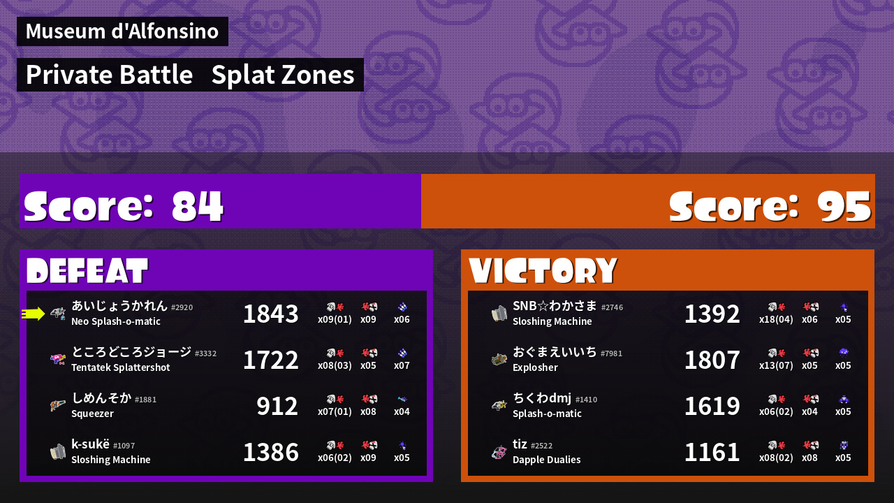 | Medals | #1 Overall Splatter #1 Turf Inker #1 Enemy Splatter | ||