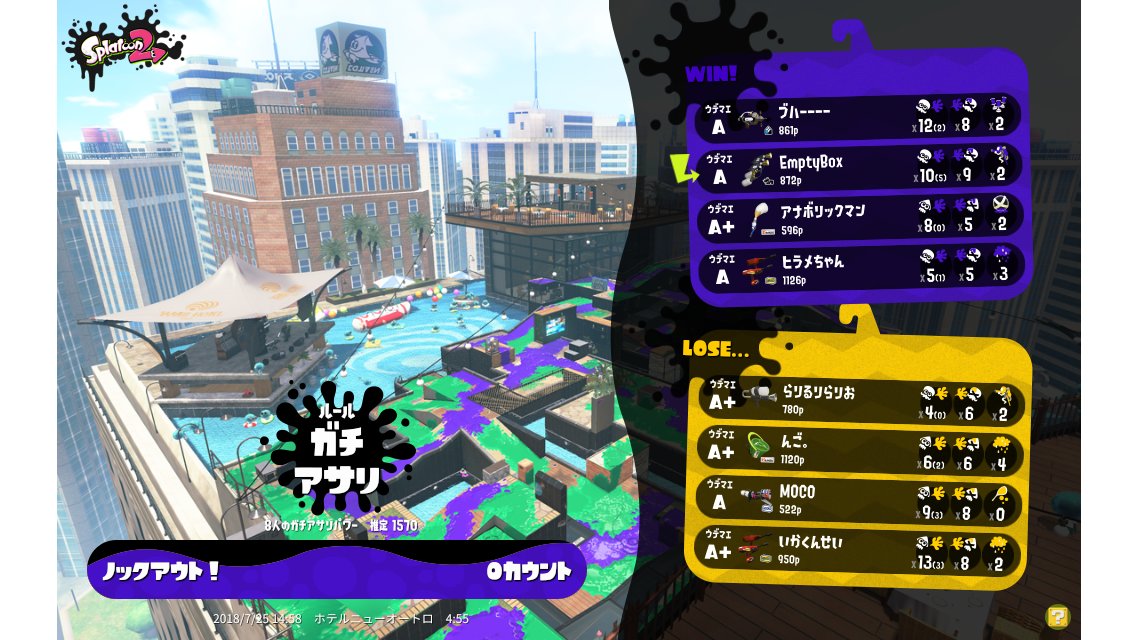 | Name | Weapon | Level | Rank | Inked | k+a/sp | k/d |