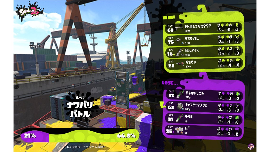 | Mode | Turf War - Regular Battle | |||||||||||||||||||||||||||||||