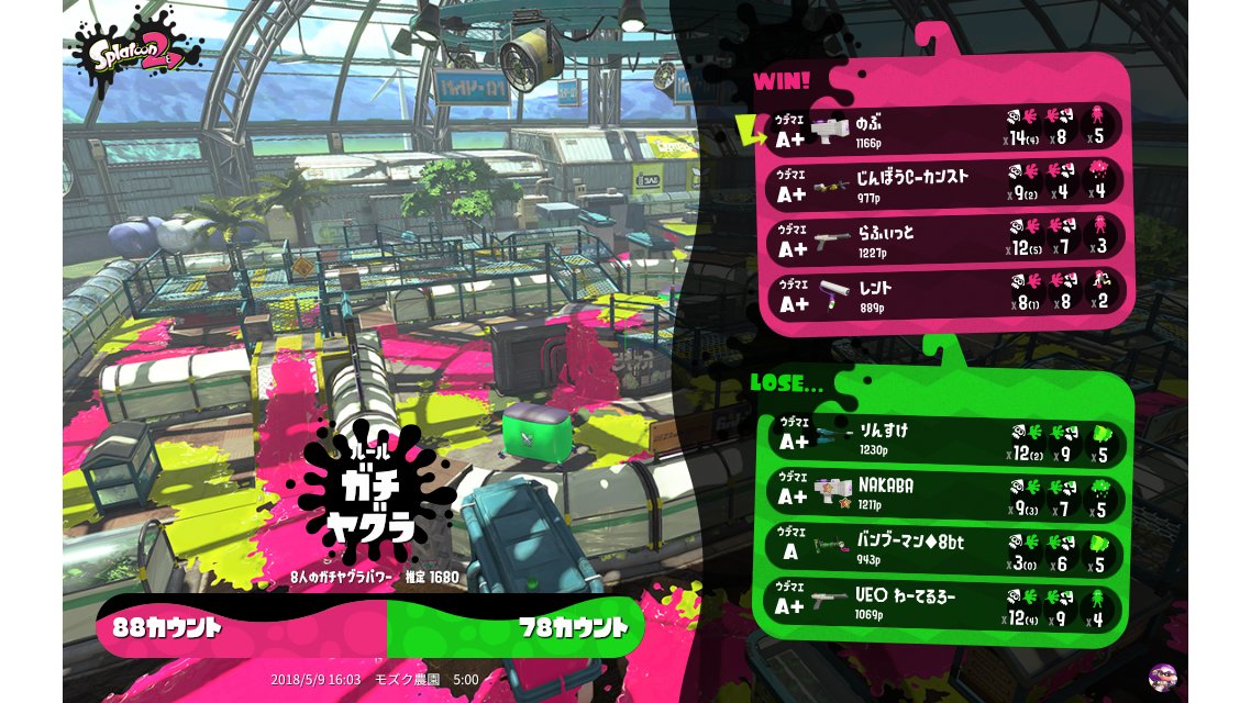 | Name | Weapon | Level | Rank | Inked | k+a/sp | k/d |