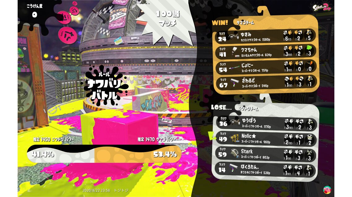 | Splatfest Title | ニワトリ Defender 304 → ニワトリ Defender 324 | |||||||||||||||||||||||||||||||||||||