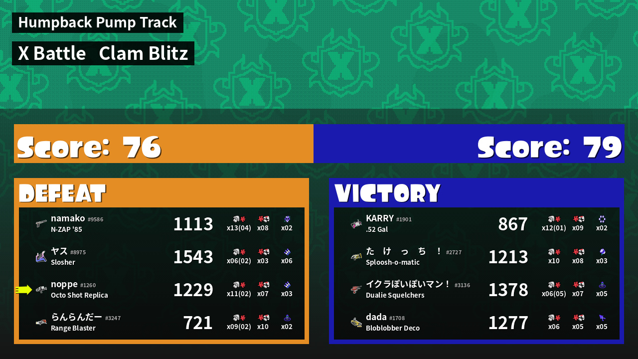| Mode | Clam Blitz - X Battle | ||