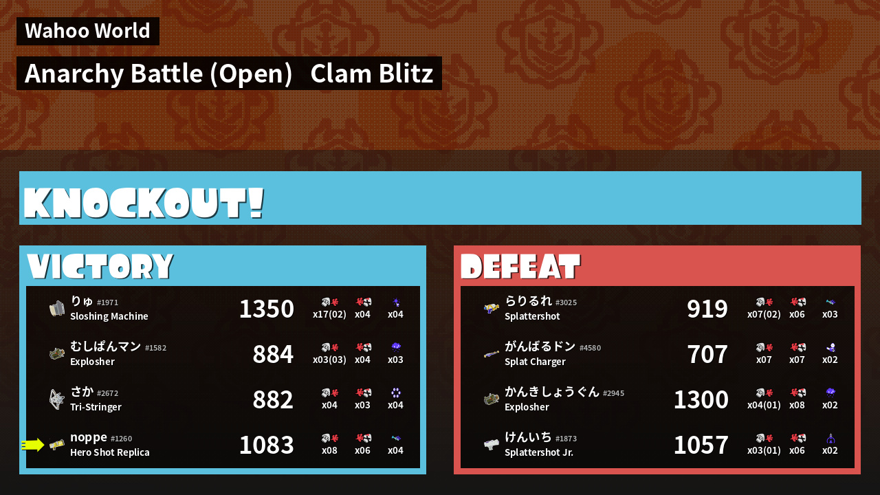 | Mode | Clam Blitz - Anarchy Battle (Open) | ||