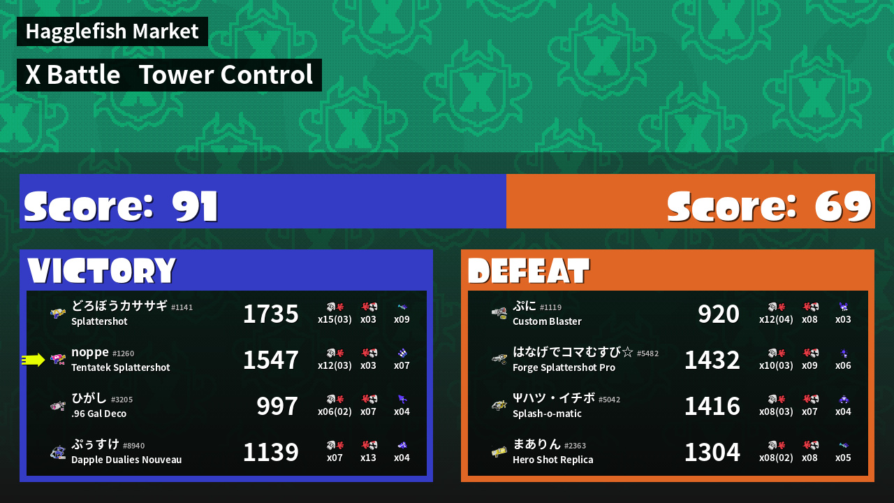 | Mode | Tower Control - X Battle | ||