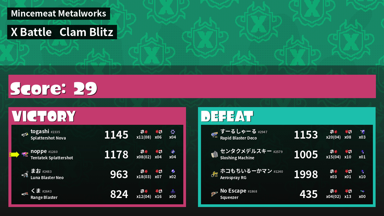 | Weapon | Tentatek Splattershot ( Splat Bomb / Triple Inkstrike) | ||