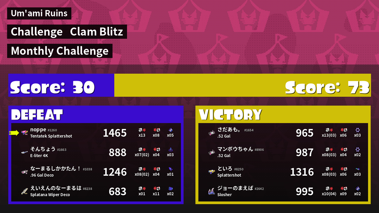 | Medals | #1 Overall Splatter #1 Turf Inker #1 Enemy Splatter | ||