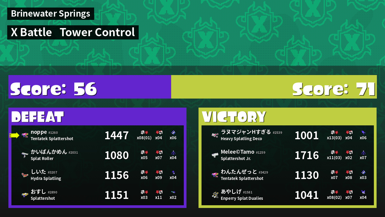 | Mode | Tower Control - X Battle | ||