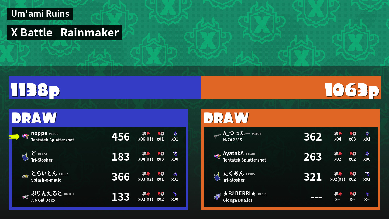 | Weapon | Tentatek Splattershot ( Splat Bomb / Triple Inkstrike) | ||