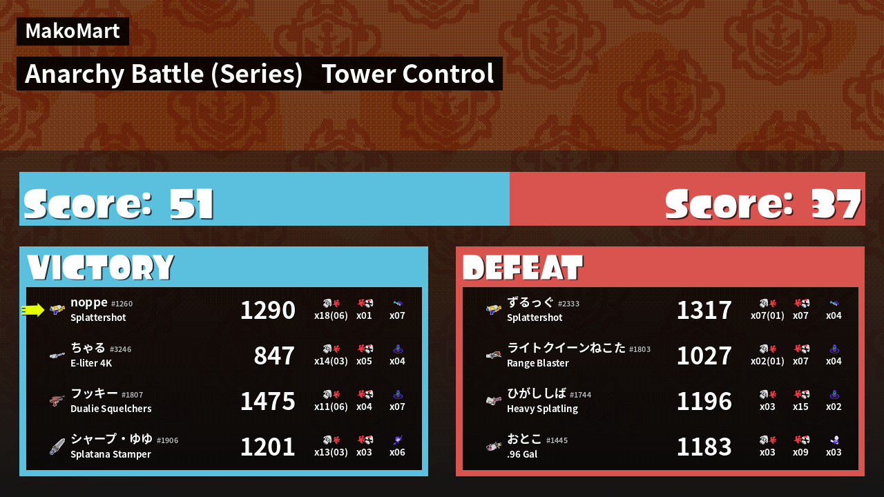 | Mode | Tower Control - Anarchy Battle (Series) | ||