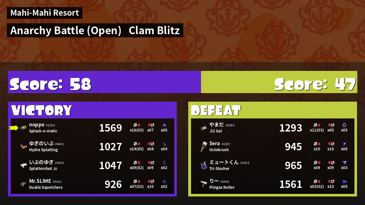 | Mode | Clam Blitz - Anarchy Battle (Open) | ||