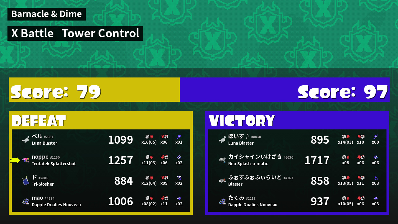 | Mode | Tower Control - X Battle | ||