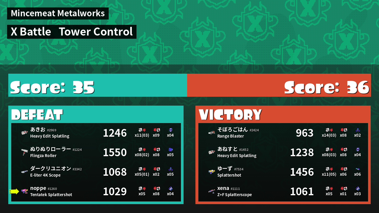 | Mode | Tower Control - X Battle | ||