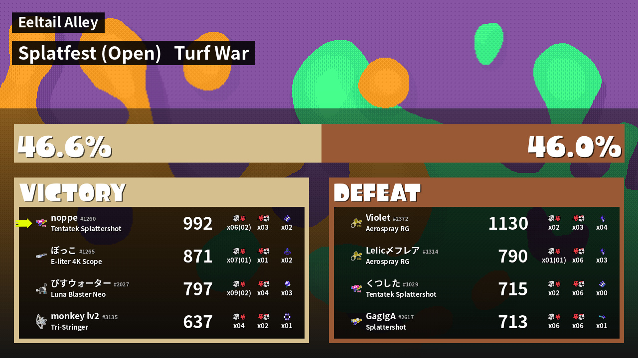 | Medals | #1 Turf Inker #1 Enemy-Base Inker #1 Splat Assister | ||