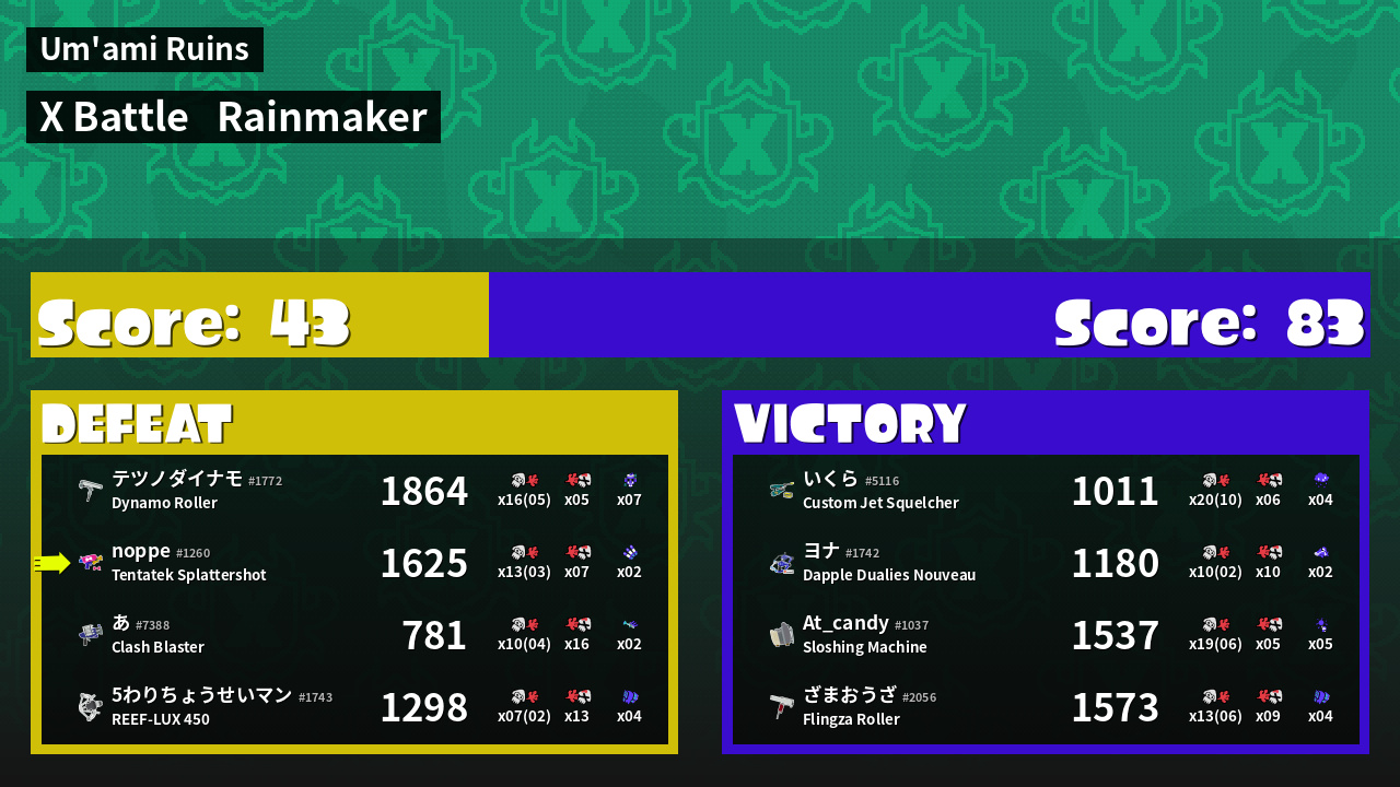 | Weapon | Tentatek Splattershot ( Splat Bomb / Triple Inkstrike) | ||