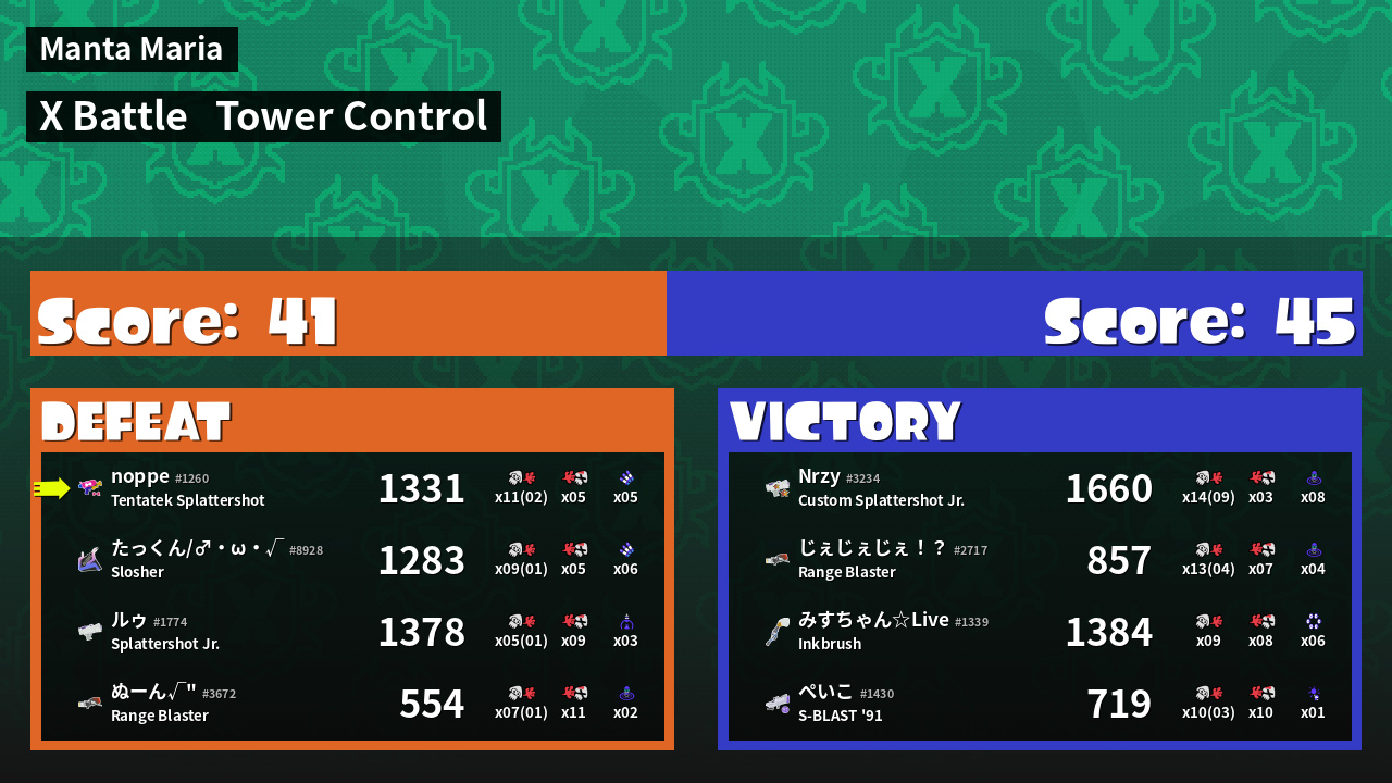 | Mode | Tower Control - X Battle | ||