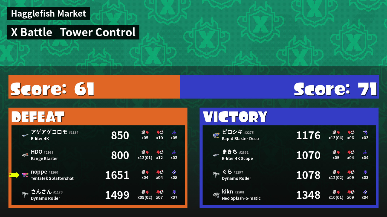 | Weapon | Tentatek Splattershot ( Splat Bomb / Triple Inkstrike) | ||