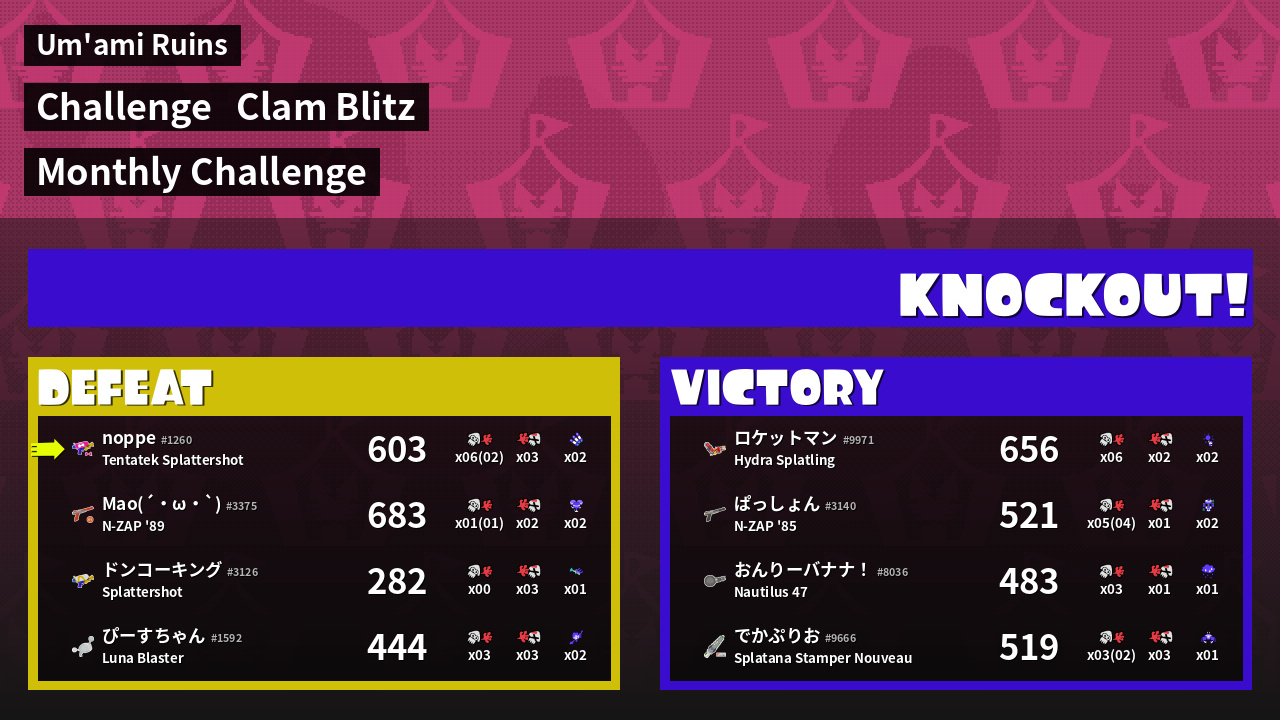 | Weapon | Tentatek Splattershot ( Splat Bomb / Triple Inkstrike) | ||