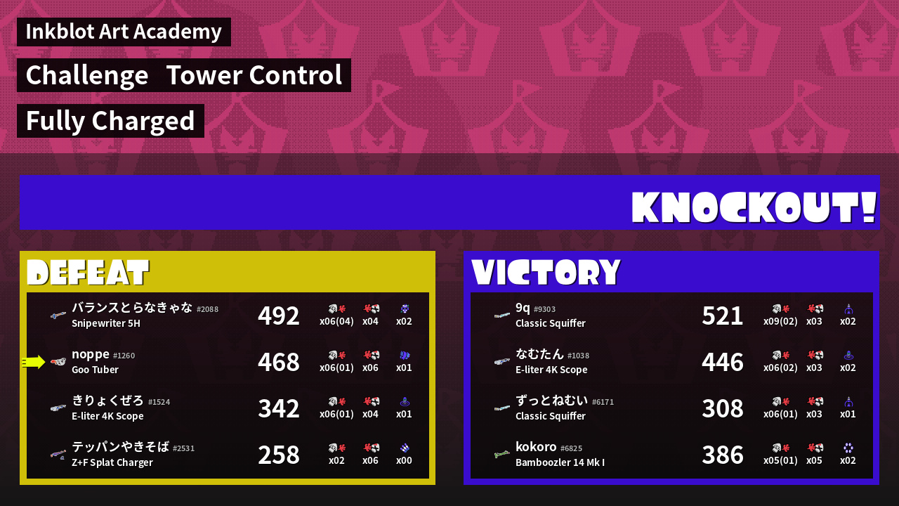 | Medals | #1 Overall Splatter #1 Score Booster Record-Score Setter | ||