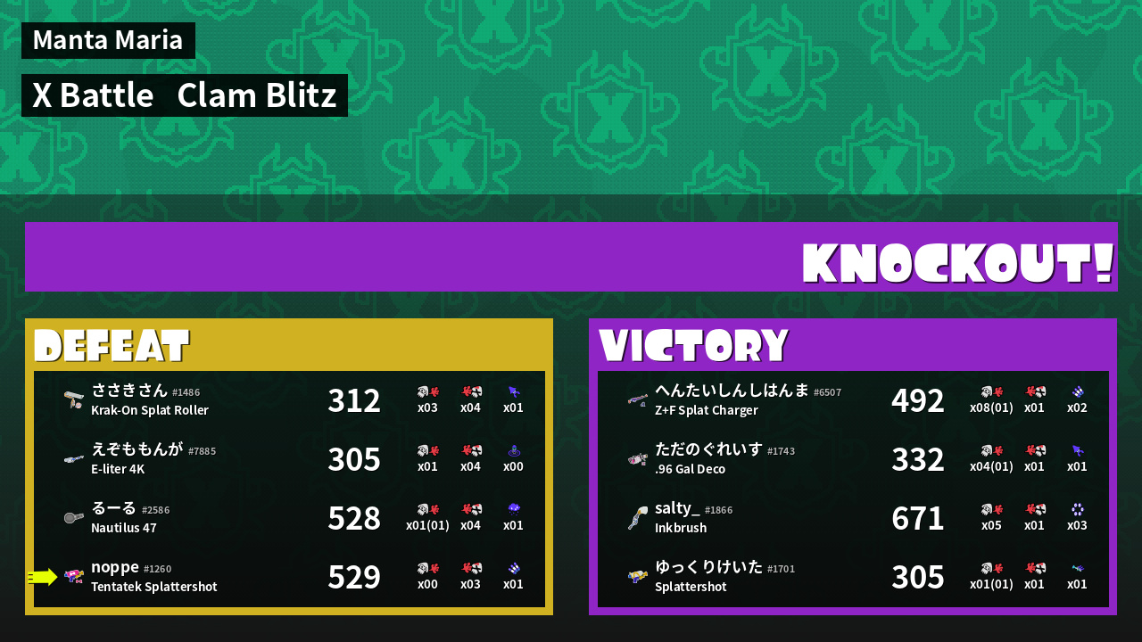 | Mode | Clam Blitz - X Battle | ||