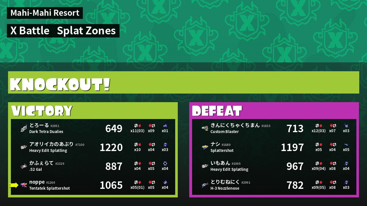 | Weapon | Tentatek Splattershot ( Splat Bomb / Triple Inkstrike) | ||