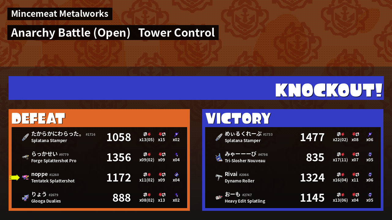 | Mode | Tower Control - Anarchy Battle (Open) | ||