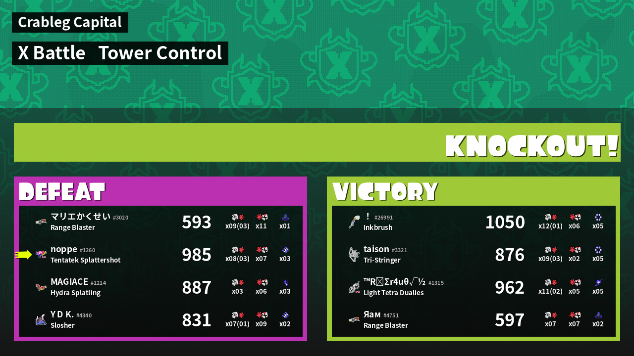 | Mode | Tower Control - X Battle | ||