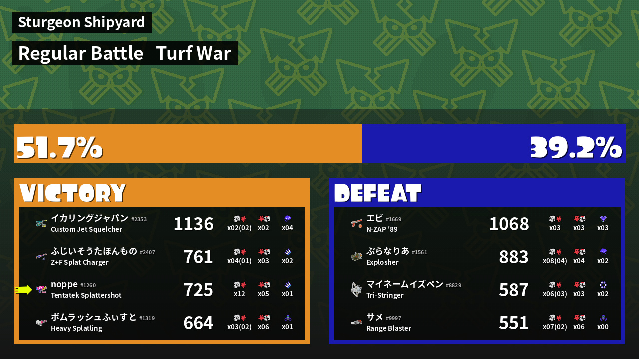| Medals | #1 Overall Splatter #1 Popular Target #1 Enemy-Base Inker | ||