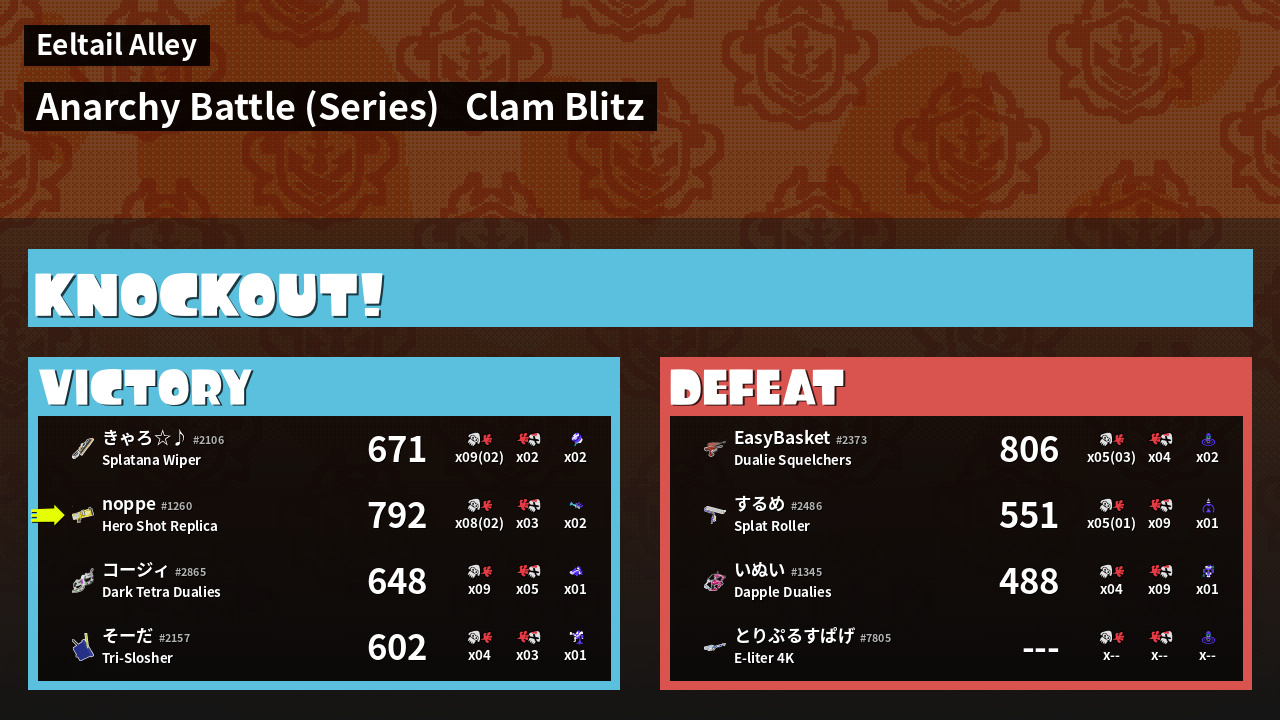 | Mode | Clam Blitz - Anarchy Battle (Series) | ||
