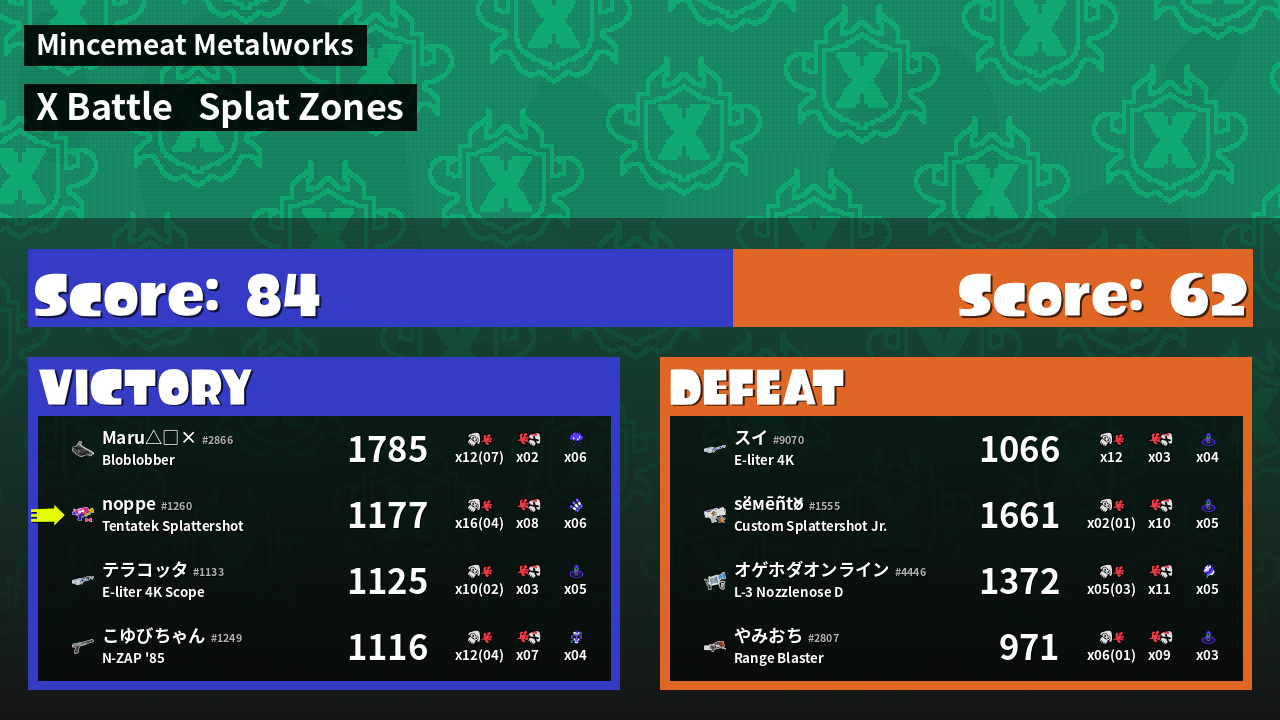 | Medals | #1 Overall Splatter #1 Enemy Splatter #1 Ink Consumer | ||