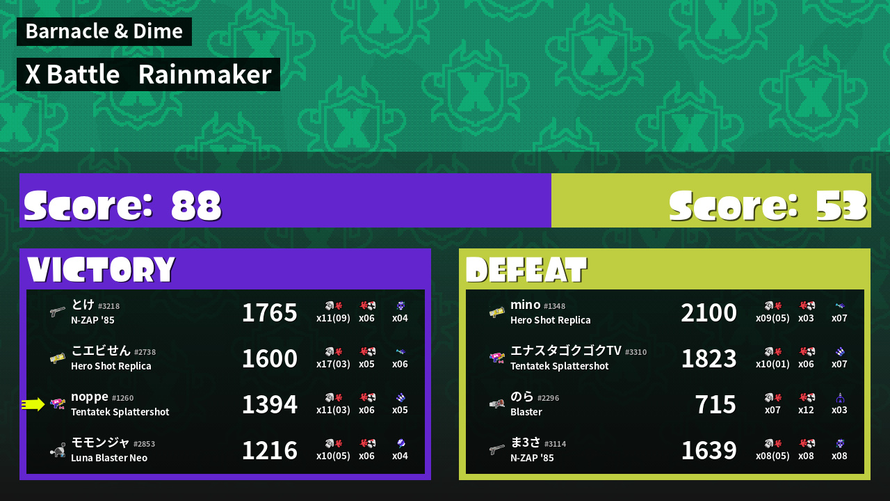 | Mode | Rainmaker - X Battle | ||