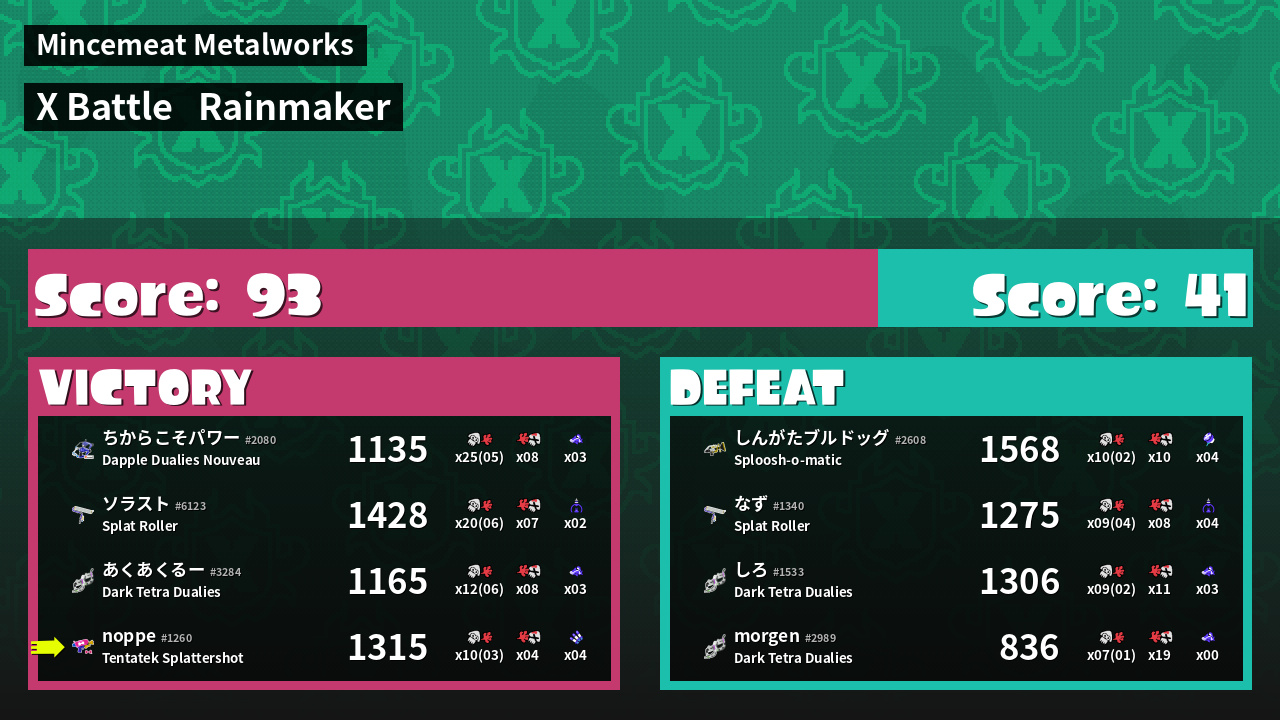 | Mode | Rainmaker - X Battle | ||