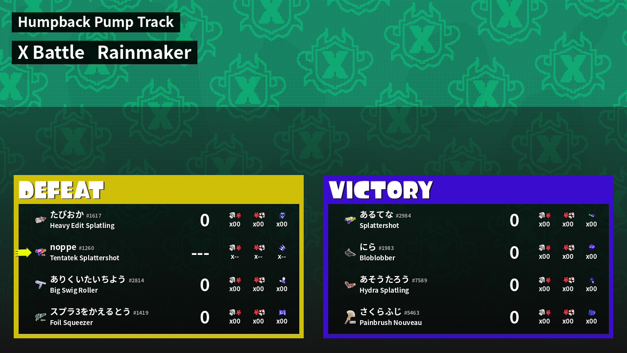 | Weapon | Tentatek Splattershot ( Splat Bomb / Triple Inkstrike) | ||